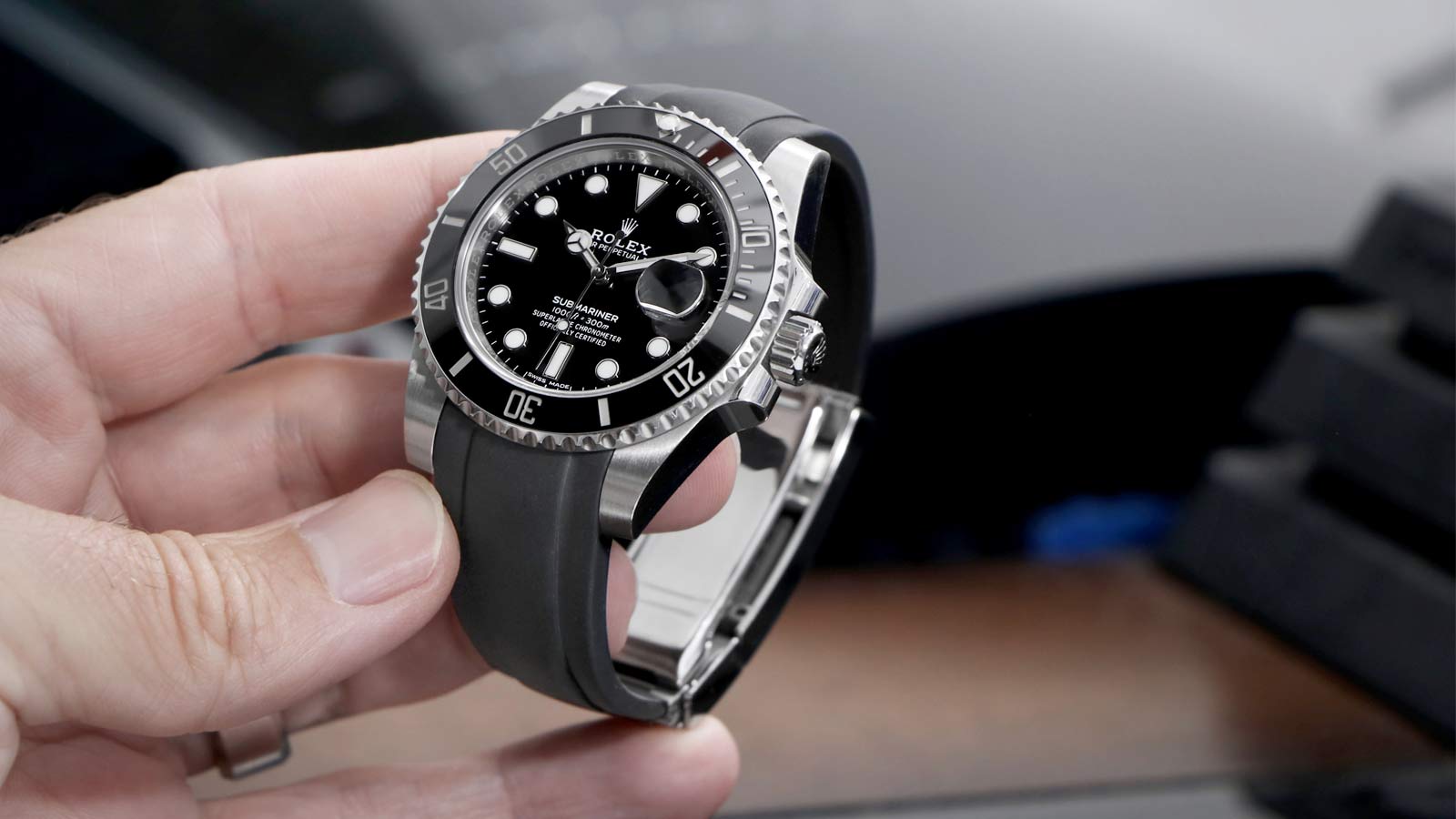 Our curved-end leather and rubber watch strap design ensures the perfect fit for your Rolex, Tudor, or Panerai.
